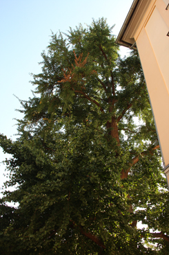 Dieser mächtige Ginkgo-Baum ist über 200 Jahre alt und stammt aus der Zeit Goethes.