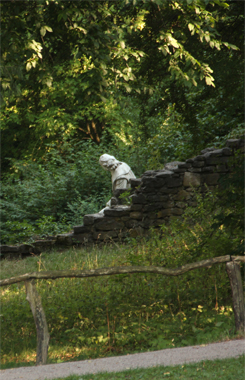 hauses und eine der Sichtachsen im Park mit Hinweisschild dazu auf dem Boden.