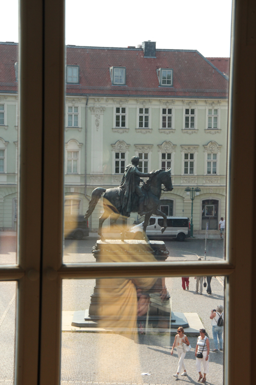 Unter dem Bildnis eines sächsischen Kurfürsten im Treppenhaus warten wir darauf,