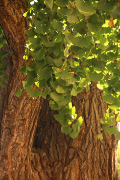 Dieser mächtige Ginkgo-Baum ist über 200 Jahre alt und stammt aus der Zeit Goethes.