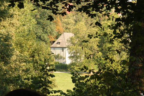 Goethes Gartenhaus, das Denkmal von William Shakespeare, die Ruine des Tempelherren-