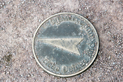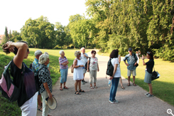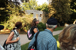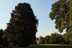 hauses und eine der Sichtachsen im Park mit Hinweisschild dazu auf dem Boden.