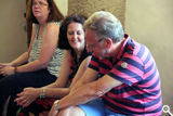 Unter dem Bildnis eines sächsischen Kurfürsten im Treppenhaus warten wir darauf,