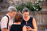 und warten zufrieden darauf, in das Opernhaus eingelassen zu werden.