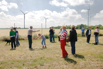 Auslauf für alle. Windkraft-Rast in freier Natur kurz hinter der Grenze in Ungarn.